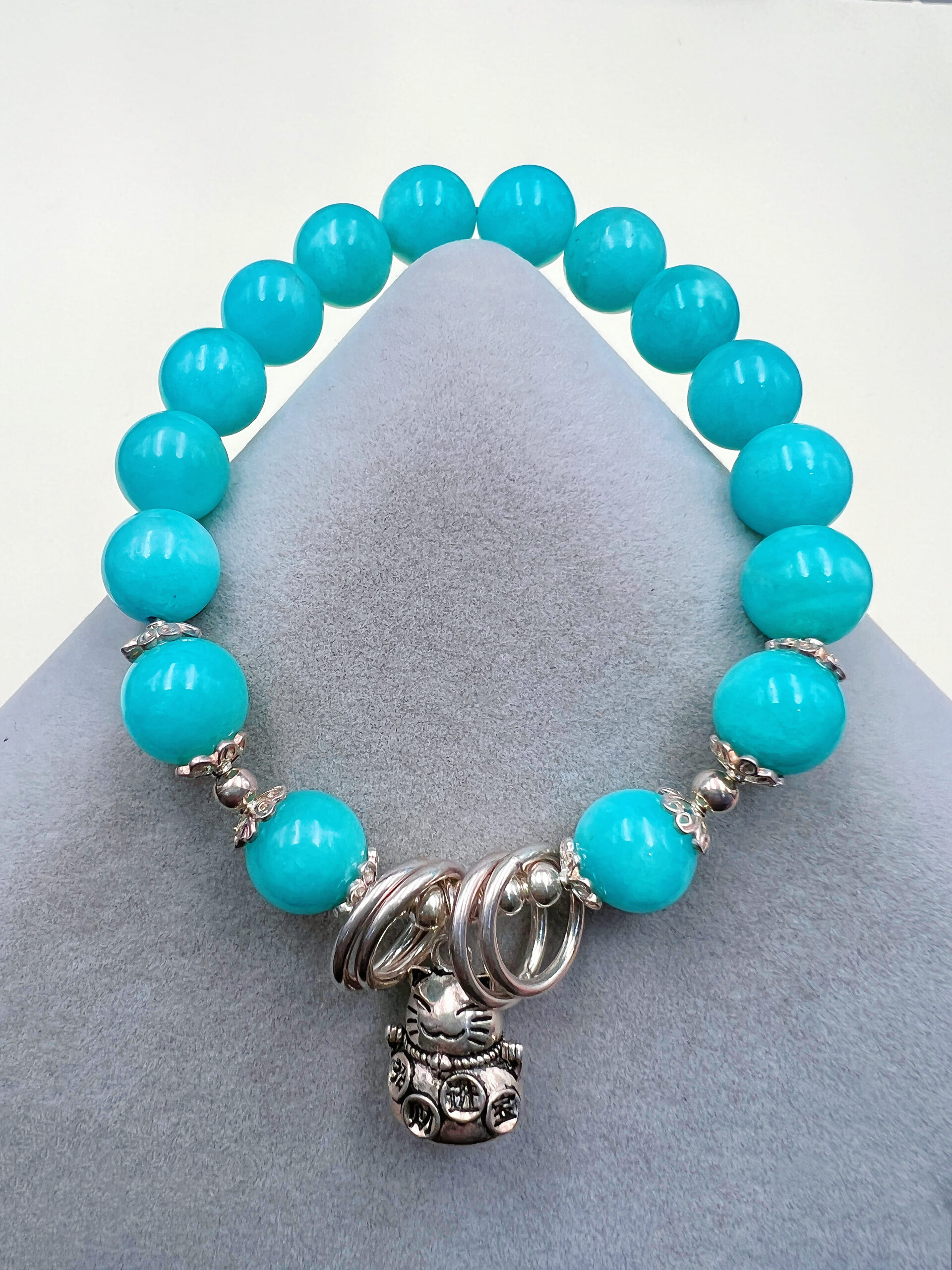 Amazonite bracelets, also known as Amazonite bracelets, are trendy jewelry pieces often crafted from multiple beads of this unique gemstone. Known for their distinct blue-green shade and natural sheen, these bracelets are highly sought after for their supposed ability to calm emotions and improve communication, making them a popular choice in the world of jewelry.