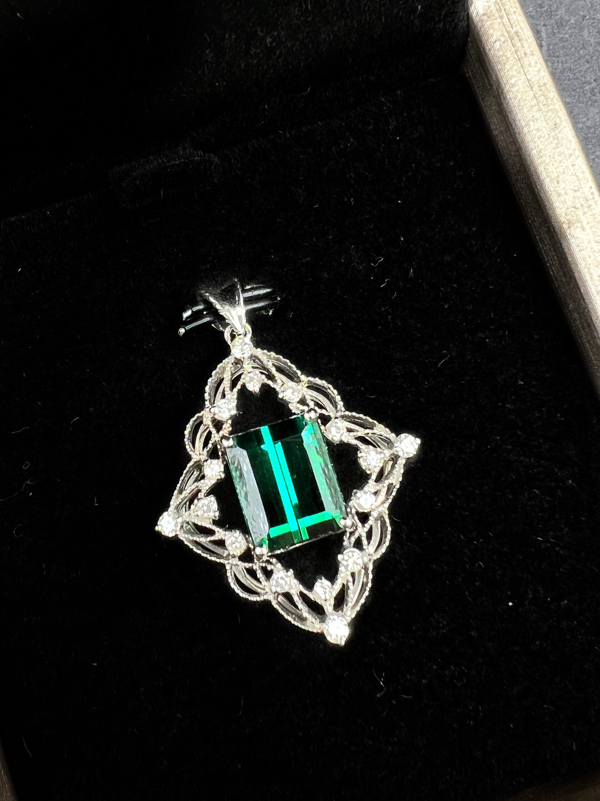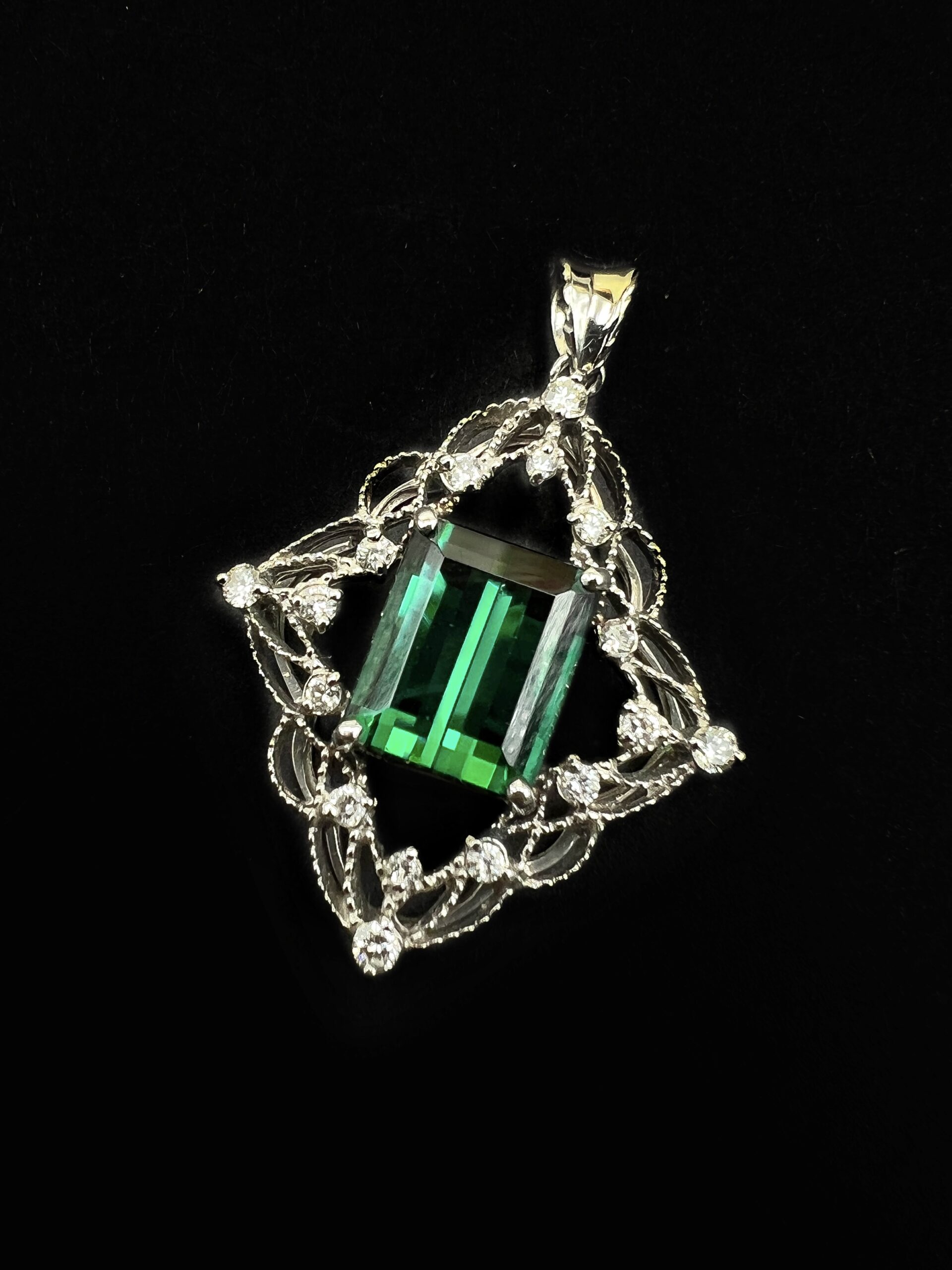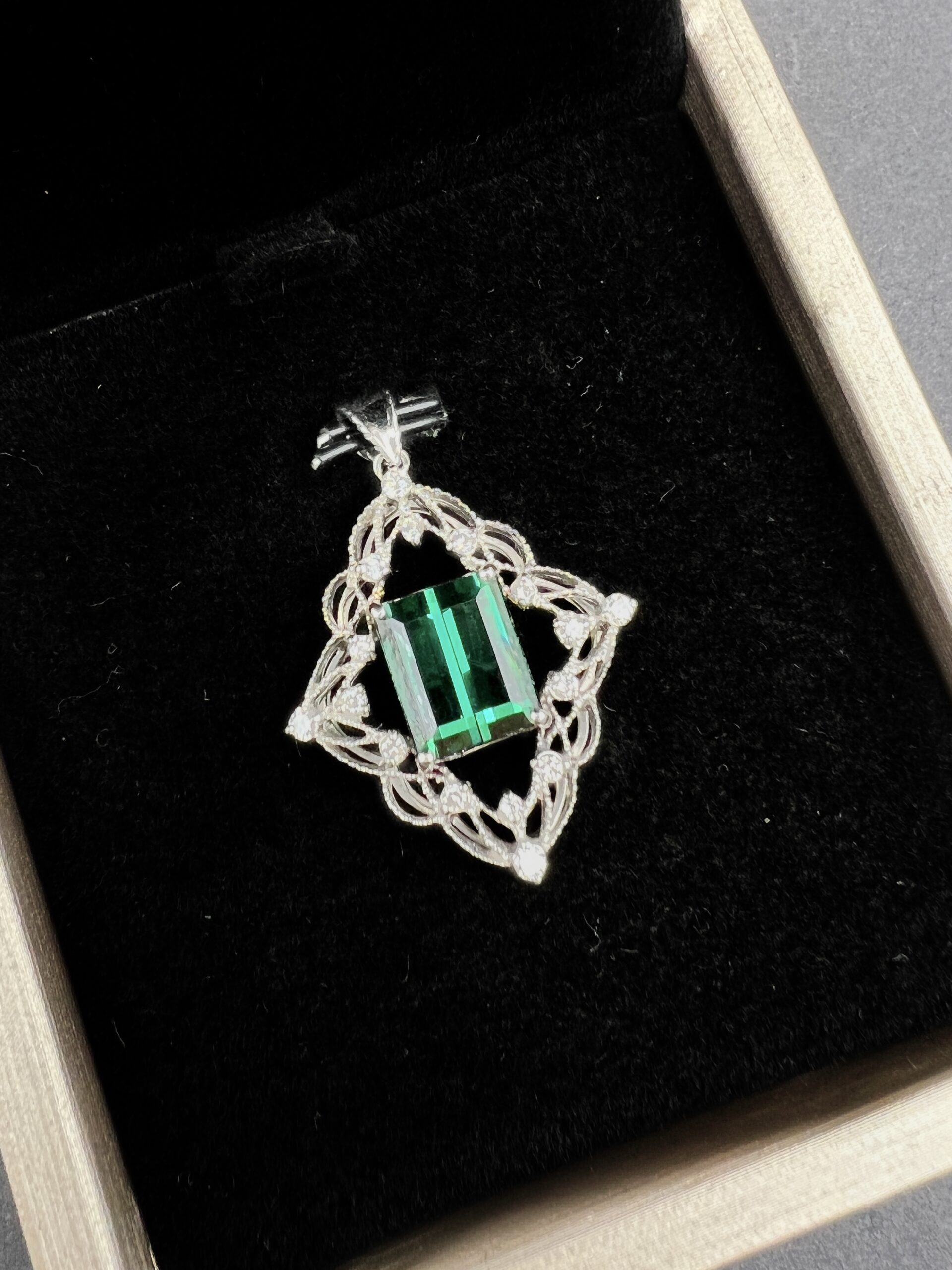 Blue-Green Tourmaline Pendant Main Stone: 4.92ct D: 0.31 PT: 5.54 g