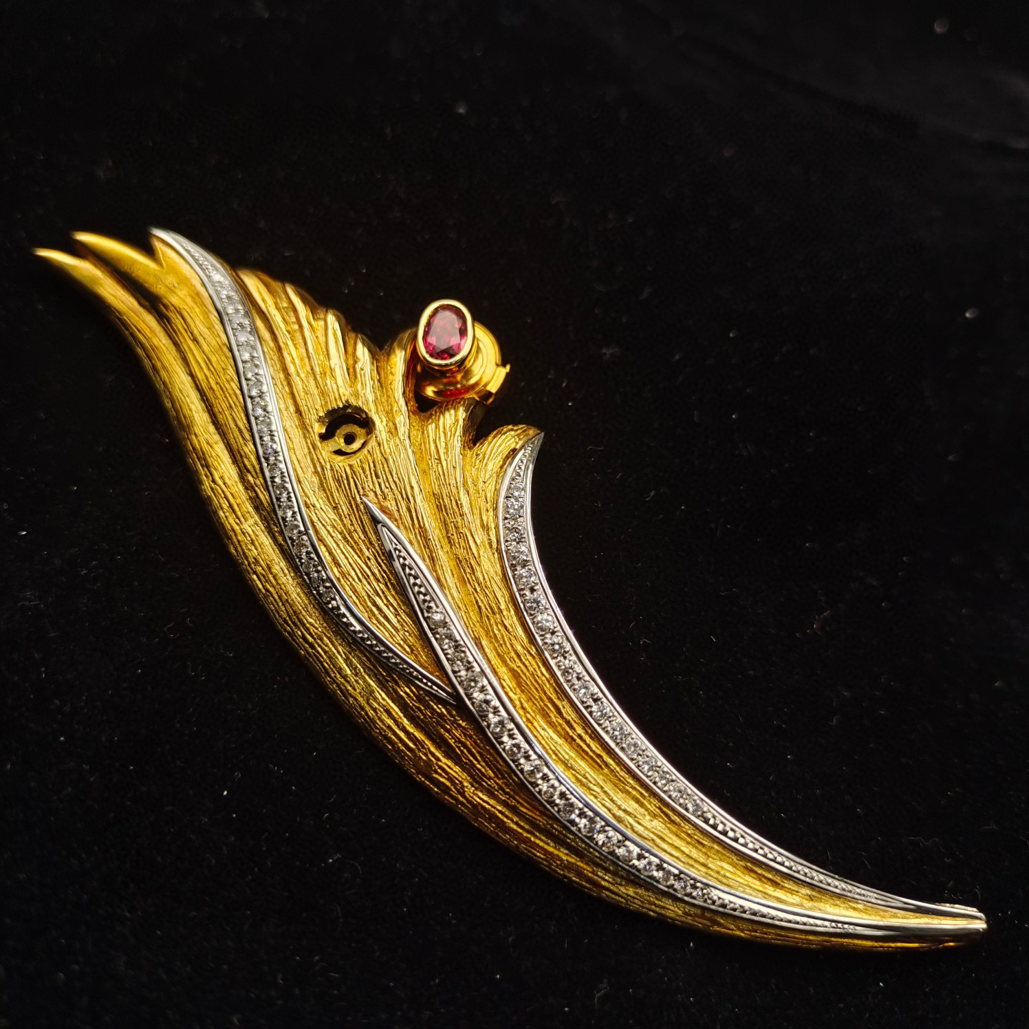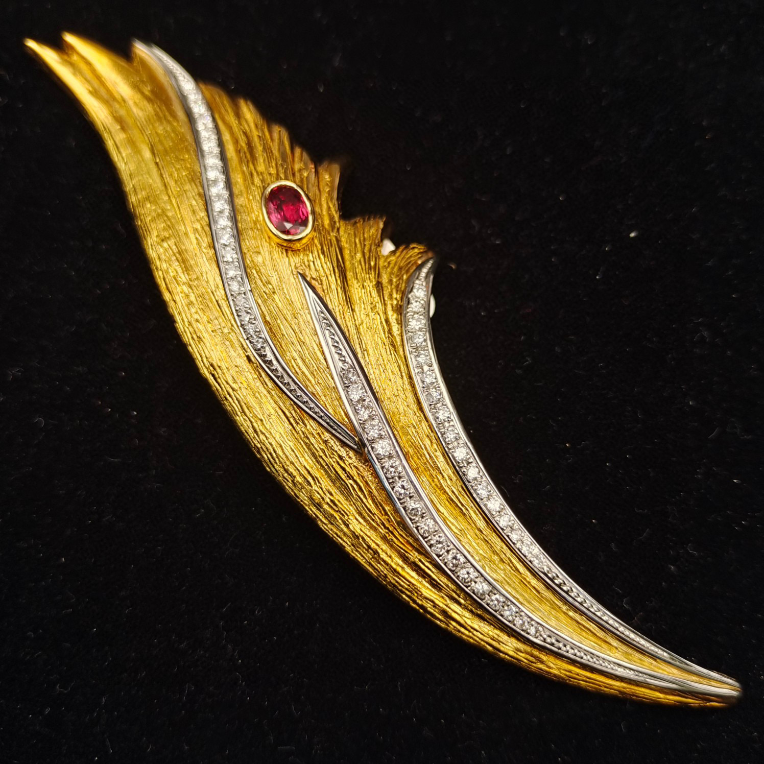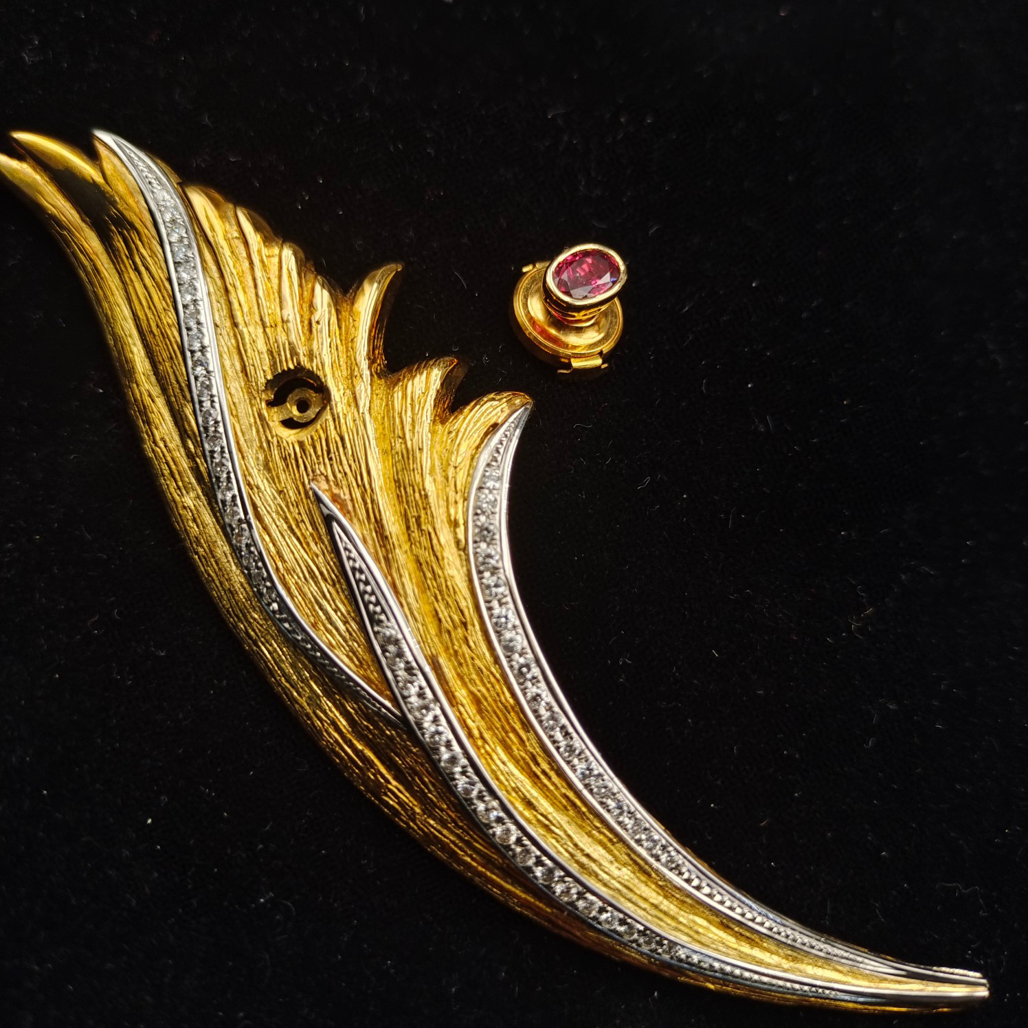 Large Ruby Brooch with Elaborate Color-Separation Design Overall
